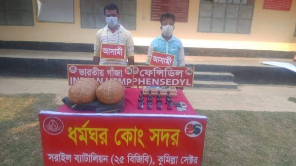 নাহিদ মিয়া মাধবপুর (হবিগঞ্জ) প্রতিনিধি: হবিগঞ্জের মাধবপুরে গাঁজা ও ফেন্সিডিলসহ দুই কারবারি কে আটক করেছে বর্ডারগার্ড বাংলাদেশ (বিজিবি)। আজ মঙ্গলবার ২২ ফেব্রুয়ারি বিকালে সাড়ে ৩টার দিকে সীমান্তের মেইন পিলার ১৯৯৬ আরো দেখুন