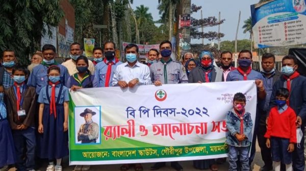 ওবায়দুর রহমান,গৌরীপুর, ময়মনসিংহ: বাংলাদেশ স্কাউটস গৌরীপুর উপজেলা শাখার উদ্যোগে বি পি দিবস পালন করা হয়েছে। দিবসটি উপলক্ষে শোভাযাত্রা, আলোচনা সভা ও চিত্রাংকন প্রতিযোগিতা অনুষ্ঠিত হয়। স্কাউটস আন্দোলনের প্রতিষ্ঠাতা রবার্ট স্টিভেন্সন আরো দেখুন