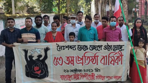 ওবায়দুর রহমান, উপজেলা প্রতিনিধি, গৌরীপুর, ময়মনসিংহ। “নৈঃশব্দ্য ভেঙ্গে জেগে উঠো দ্রোহে” এই শ্লোগানে ময়মনসিংহের গৌরীপুরে ঐতিহ্যবাহী সাংস্কৃতিক সংগঠন বাংলাদেশ উদীচী শিল্পীগোষ্ঠী’র ৫৩তম প্রতিষ্ঠাবার্ষিকী বিভিন্ন কর্মসূচীর মধ্য দিয়ে পালন করেছে গৌরীপুর আরো দেখুন