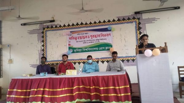 কুবি প্রতিনিধি: কুমিল্লা বিশ্ববিদ্যালয় (কুবি) প্রেস ক্লাবের ২০২১-২২ বর্ষের কার্যনির্বাহী কমিটির দায়িত্ব হস্তান্তর এবং প্রতিষ্ঠাবার্ষিকী উপলক্ষ্যে আয়োজিত প্রবন্ধ লিখন ও ফটোগ্রাফি প্রতিযোগিতার পুরস্কার বিতরণ অনুষ্ঠান সম্পন্ন হয়েছে। সোমবার (১১ অক্টোবর) আরো দেখুন
