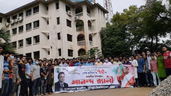 আসাদুজ্জামান রাব্বি, কুবি প্রতিনিধি: প্রধানমন্ত্রী শেখ হাসিনার ৭৫ তম জন্মদিন উপলক্ষে আনন্দ মিছিল করেছে কুমিল্লা বিশ্ববিদ্যালয় (কুবি) শাখা ছাত্রলীগ। মঙ্গলবার (২৮সেপ্টেম্বর) সকাল ৯ টায় শাখা ছাত্রলীগের সভাপতি ইলিয়াস হোসেন সবুজ আরো দেখুন