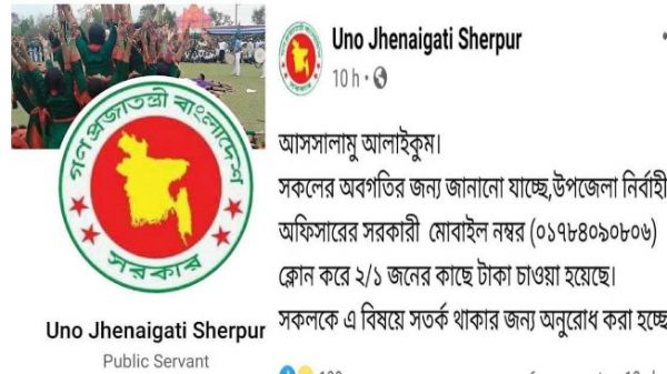 শেরপুর প্রতিনিধিঃ- শেরপুর জেলার ঝিনাইগাতি উপজেলার নির্বাহী অফিসার (ইউএনও)-এঁর অফিসিয়াল তথা সরকারি মোবাইল নম্বরটি (০১৭৮৪ ০৯–০৬) ক্লোন করেছে সাইবার ক্রিমিনালরা। ক্লোন করা এ মোবাইল নম্বর দিয়ে ক্রিমিনালরা বিভিন্ন লোকজনের কাছে আরো দেখুন