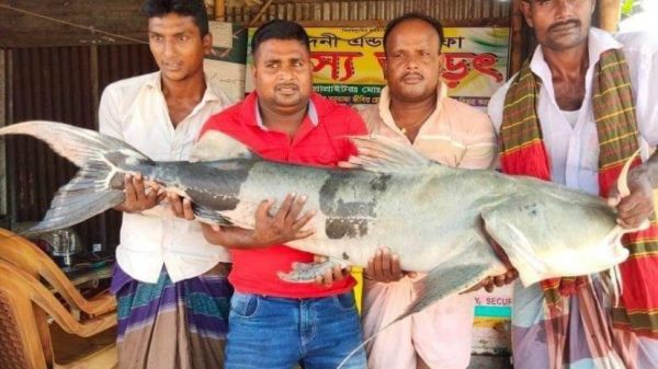 আরিফুর রহমান মিসুক,গোয়ালন্দ(রাজবাড়ী) প্রতিনিধিঃ- রাজবাড়ীর গোয়ালন্দ উপজেলার দৌলতদিয়া ৭ নং ফেরি ঘাটের অদুরে পদ্মা যমুনা নদীর মোহনায় জেলের জালে ধরা পড়েছে বিশাল এক বাঘাইড় মাছ। মাছটির ওজন ৩৭ কেজি।রোবরার ভোরে আরো দেখুন
