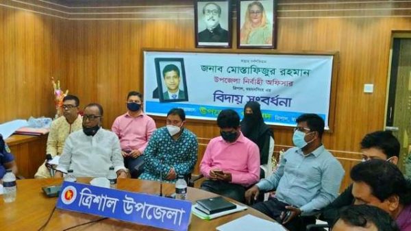 আনোয়ার সাদত জাহাঙ্গীর,ময়মনসিংহঃ ত্রিশালের উপজেলা নির্বাহী অফিসার মোস্তাফিজুর রহমান এর বিদায় সংবর্ধনা উপজেলা পরিষদের রাশেদুজ্জামান হলরুমে অনুষ্ঠিত হয়।বিদায় সংবর্ধনা অনুষ্ঠানে সভাপতিত্ব করেন ত্রিশাল উপজেলা পরিষদের চেয়ারম্যান বীর মুক্তিযোদ্ধা আলহাজ্ব আবদুল আরো দেখুন