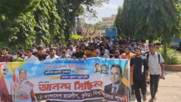 কুবি প্রতিনিধি: প্রধানমন্ত্রী শেখ হাসিনাকে ‘এসডিজি অগ্রগতি পুরস্কার ও মুকুট মনি’ সম্মাননায় ভূষিত করায় আনন্দ মিছিল করেছে কুমিল্লা বিশ্ববিদ্যালয় শাখা ছাত্রলীগ। বৃহস্পতিবার (২৩ সেপ্টেম্বর) সকাল ৯ টায় শাখা ছাত্রলীগের সভাপতি আরো দেখুন
