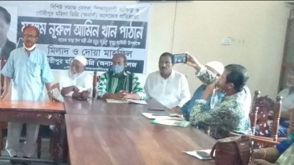 ওবায়দুর রহমান, উপজেলা প্রতিনিধি, গৌরীপুর, ময়মনসিংহ: সাবেক স্বাস্থ্য উপমন্ত্রী ও গৌরীপুর মহিলা ডিগ্রী (অনার্স) কলেজের প্রতিষ্ঠাতা মরহুম নুরুল আমীন খান পাঠানের ২১তম মৃত্যুবার্ষিকী উপলক্ষে ময়মনসিংহের গৌরীপুরে স্মরণসভা ও দোয়া-মাহফিল অনুষ্ঠিত আরো দেখুন