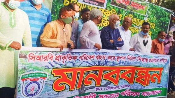 ইসমাইল ইমন চট্টগ্রাম মহানগর প্রতিনিধি। পরিবেশ ও প্রকৃতি রক্ষায় দূর্নীতি বিরোধীসচেতন পরিষদ বাংলাদেশ কেন্দ্রীয় কমিটির উদ্যোগে ৩ রা সেপ্টেম্বর শুক্রবার বিকেল ৩ টায় সি আর বি র সবুজ চত্বরে মানববন্ধন আরো দেখুন