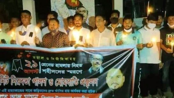 আনোয়ার সাদত জাহাঙ্গীর,ময়মনসিংহঃ ২০০৪ সালের ২১ আগস্ট গ্রেনেড হামলায় নিহত সকল শহীদদের স্মরণে ত্রিশালে ১ মিনিট নীরবতা পালন ও মোমবাতি প্রজ্বলন করা হয়।শনিবার রাতে ত্রিশাল পৌরসভার শহীদ মিনার প্রাঙ্গনে এ আরো দেখুন