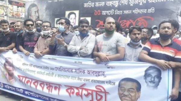 এম বশির, ব্যুরো প্রধান, বরিশাল: বরিশাল সিটি করপোরেশনের কর্মকর্তা-কর্মচারীরা শনিবার দুপুরে মানববন্ধন করে মেয়রসহ অন্যদের বিরুদ্ধে করা মামলা প্রত্যাহারের দাবি জানান। একই দাবিতে বিক্ষোভ করেছেন বরিশাল ছাত্রলীগের নেতা-কর্মীরা। জাতীয় শোক আরো দেখুন