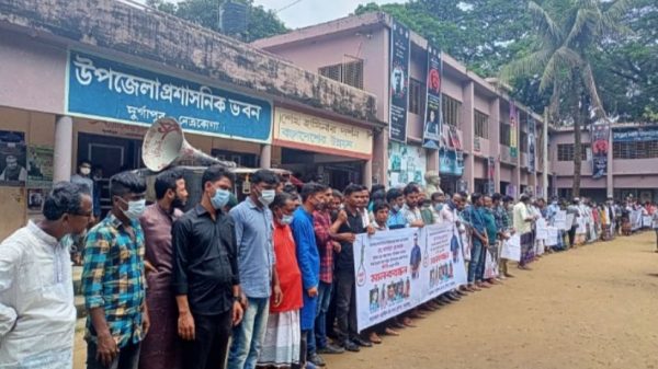 আল নোমান শান্ত,দুর্গাপুর(নেত্রকোনা)প্রতিনিধিঃ নেত্রকোনার দুর্গাপুরে আনন্দমোহন বিশ্ববিদ্যালয়ের শিক্ষার্থী মো. আনোয়ার হোসেন(২৫) হত্যাকাণ্ডের ঘটনায় জড়িত ব্যক্তিদের ফাঁসির দাবিতে মানববন্ধন করেছে বড়ইউন্দ ছাত্র সংঘ। শনিবার দুপুরে উপজেলা পরিষদ চত্বরে শত শত শিক্ষীর্থীদের আরো দেখুন