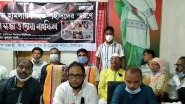 সোলায়মান, নাগরপুর(টাংগাইল) উপজেলা প্রতিনিধি : টাঙ্গাইলের নাগরপুরে ২০০৪ সালের ২১ আগস্ট নারকীয় গ্রেনেড হামলায় নিহত শহীদের স্মরণে আলোচনা সভা ও দোয়া মাহফিল অনুষ্ঠিত হয়েছে। শনিবার সকালে উপজেলা আওয়ামীলীগের উদ্যোগে দলীয় কার্যালয়ে আরো দেখুন