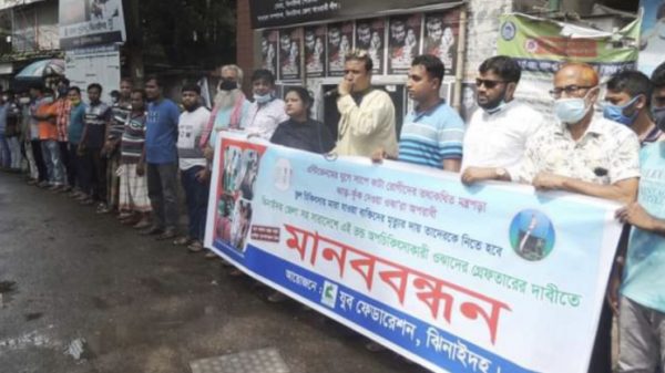 বাদল হোসাইন সখীপুর(টাঙ্গাইল) প্রতিনিধি:- টাঙ্গাইলের সখীপুরে গ্রামবাসী উদ্যোগে মাদকবিরোধী মানববন্ধন হয়েছে। আজ শুক্রবার (২০আগষ্ট) বিকেল ৪টায় উপজেলার বগাপ্রতিমা গ্রামে সখীপুর -বহেড়াতৈল সড়কে ঘন্টা ব্যাপি এ মানববন্ধন অনুষ্ঠিত হয়। মানববন্ধনে বক্তব্য রাখেন আরো দেখুন
