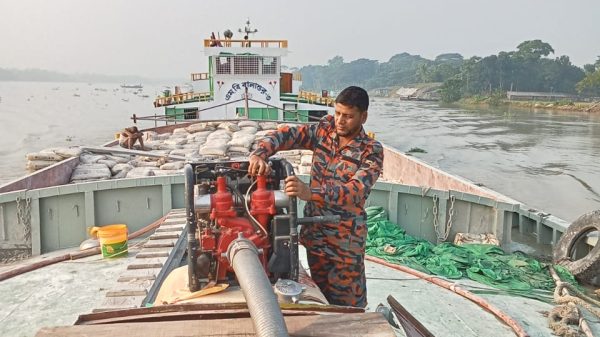 স্টাফ রিপোর্টার- ৫৫০ টন ওজনের এগার হাজার ব্যাগ সিমেন্ট নিয়ে ঢাকা থেকে খুলনা যাচ্ছিল এমভি বালাশুর ৩ একটি লাইটার জাহাজ। পথিমধ্যে বরিশালের উজিরপুর থানাধীন সন্ধ্যা নদীর দোহারিকা ব্রিজের কাছে ডুবন্ত