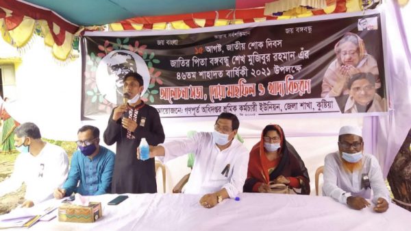 মোঃ সুজন বিশ্বাস কুষ্টিয়া জেলা প্রতিনিধি।। জাতীয় শোক দিবস উপলক্ষে ১৫ আগস্ট রবিবার বিকেলে কুষ্টিয়া গণপূর্ত অধিদপ্তরের শ্রমিক কর্মচারী ইউনিয়ন যার রেজিঃ নং বি-২০০৫ জেলা কার্যালয় কুষ্টিয়া কর্তৃক আলোচনা সভা, দোয়া আরো দেখুন