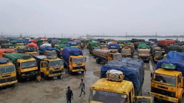 কাজী নাফিস ফুয়াদ মাদারিপুর প্রতিনিধিঃ ফেরি চলাচল ব্যাহত হওয়ায় আটকা পড়েছে কয়েক শতাধিক পণ্যবাহী ট্রাক। মঙ্গলবার দুপুরে মাদারীপুরের বাংলাবাজার ফেরিঘাট এলাকায়।ফেরি চলাচল ব্যাহত হওয়ায় আটকা পড়েছে কয়েক শতাধিক পণ্যবাহী ট্রাক। আরো দেখুন