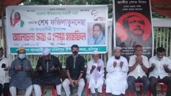 নাহিদ মিয়া,মাধবপুর(হবিগঞ্জ) প্রতিনিধি হবিগঞ্জের মাধবপুরে বঙ্গমাতা শেখ ফজিলাতুন্নেছা মুজিবের ৯১তম জন্মবাষিকী পালিত করা হয়েছে। রোববার বিকালে মাধবপুর আওয়ামীলীগের অস্থায়ী কার্যালয়ে আওয়ামীলীগের আয়োজনে আলোচনাসভা ও মিলাদ মাহফিলে অনুষ্ঠিত হয়েছে। উপজেলা আওয়ামীলীগের আরো দেখুন