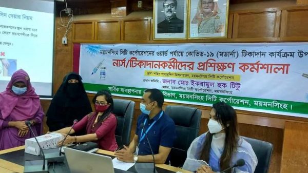 আনোয়ার সাদত জাহাঙ্গীর,ময়মনসিংহঃ ওয়ার্ড পর্যায়ে কোভিড-১৯ (মর্ডানা) টিকাদান কার্যক্রম বাস্তবায়নের লক্ষ্যে ময়মনসিংহ সিটি কর্পোরেশনের শহীদ শাহাবুদ্দিন মিলনায়তে নার্স ও টিকাদানকর্মীদের প্রশিক্ষণ কর্মশালা অনুষ্ঠিত হয়েছে।আগামী ৭ আগস্ট থেকে প্রতিটি ওয়ার্ডে দৈনিক আরো দেখুন