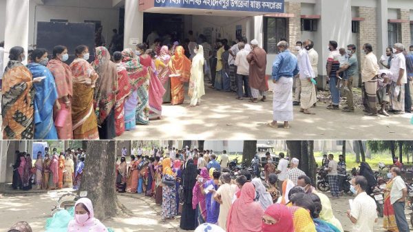 কাজী সামছুজ্জোহা মিলন মহাদেবপুর (নওগাঁ) প্রতিনিধিঃ ৩০ জুলাই ২০২১: করোনার প্রকোপ বেড়ে যাওয়ায় নওগাঁর মহাদেবপুরে টিকা নিতে মানুষের আগ্রহ বেড়েছে। প্রতিদিন উপজেলা স্বাস্থ্য কমপ্লেক্সে মানুষ টিকা নিতে ভীড় জমাচ্ছেন। মানুষের ভিড়াভিড়িতে আরো দেখুন