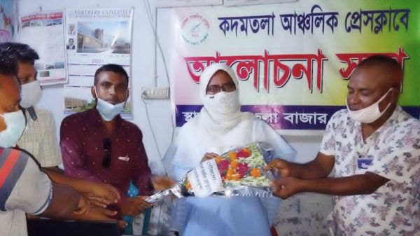মোঃ জাহাঙ্গীর সরদার, সাতক্ষীরা সদর প্রতিনিধি : স্বাস্থ্যবিধি মেনে সাতক্ষীরা সদর উপজেলার নির্বাহী কর্মকর্তা ফাতেমা তুজ জোহরাকে ফুলের শুভেচ্ছা জানিয়েছেন কদমতলা আঞ্চলিক প্রেসক্লাবের সাংবাদিকরা। বৃহস্পতিবার সকাল ১০ টায় কদমতলা বাজাস্থ আরো দেখুন