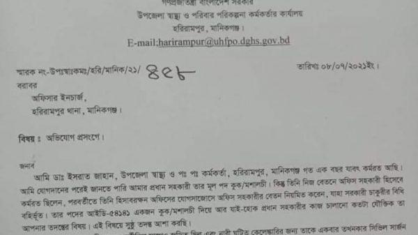 সায়েম খান, হরিরামপুর (মানিকগঞ্জ) প্রতিনিধিঃ মানিকগঞ্জের হরিরামপুর উপজেলা স্বাস্থ্য কমপ্লেক্সে প্রধান সহকারী কাম হিসাবরক্ষক হারুন অর রশিদের বিরুদ্ধে অর্থ আত্মসাৎ সহ হাসপাতালের প্রয়োজনীয় কাগজপত্র চুরির অভিযোগ উঠেছে। গত ১০ জুলাই আরো দেখুন