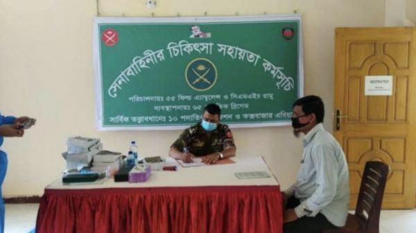 এফ.করিম, উখিয়া(কক্সবাজার) প্রতিনিধি। দেশে করোনা পরিস্থিতির এই সংকটময় সময়ে কক্সবাজারের উখিয়ায় দুস্থ ও অসহায় রোগীদের জন্য বিনামূল্যে চিকিৎসা সেবা প্রদান করেছে বাংলাদেশ সেনাবাহিনীর ১০ পদাতিক ডিভিশন। ১১ জুলাই (রবিবার) উখিয়া আরো দেখুন