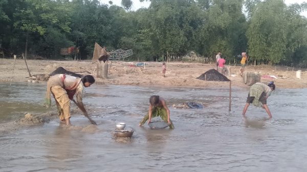 আতিকুর রহমান, সুনামগঞ্জ প্রতিনিধিঃ প্রাকৃতিক সৌন্দর্যের লীলাভূমি হিসেবে পরিচিত সুনামগঞ্জের তাহিরপুরউপজেলাটি।সেই উপজেলার রুপের রানীখ্যাত সীমান্ত নদী যাদুকাটা, চানপুর ছড়া, বড়ছড়া, লাকমাছড়া, কলাগাও ছড়াসহ ভারত থেকে নেমেআসা প্রতিটি নদীতে গিয়ে একটি দৃশ্য প্রথমেই সবার চোখে পড়বে।প্রতিটি সীমান্ত নদীতে হাজার হাজার নারী, পুরুষ, শিশু বৃদ্ধরা দলবেধেকয়লা কুড়াচ্ছেন। যা থেকে সংসার চলছে সীমান্ত জনপদে বসবাসরতঅধিকাংশ অসহায় পরিবারগুলোর।কিন্তু বিগত এক বছর যাবৎসীমান্তের খেটে খাওয়া মানুষজন কতৃক পাহাড়ি ছড়া বা নদী দিয়ে ঢলেরপানিতে ভেসে আসা বাংলা কয়লা কুড়ানোয় বাধা হয়ে দাড়িয়েছে সীমান্তরক্ষায় নিয়োজিত বিজিবি সদস্যরা। উপজেলার উত্তর শ্রীপুর ইউনিয়নের সীমান্ত এলাকার জঙ্গলবাড়ীসরকারী প্রাথমিক বিদ্যালয়ের চতুর্থ শ্রেণির ছাত্রী কামরুন নাহার, দ্বিতীয়শ্রেণির ছাত্রী ফজিলা, প্রথম শ্রেণির ছাত্রী সামসুন নাহারসহ এলাকারঅনেক স্কুল পড়–য়া কোমলমতি শিশু পাহাড় থেকে বয়ে আসা ছড়াথেকে কয়লা উত্তোলন করে সেই কয়লা বিক্রি করে পরিবারের অভাবঘোছায়। গতকাল সরেজমিনে গিয়ে দেখা যায়, সুনামগঞ্জ ২৮ বর্ডারগার্ড ব্যাটালিয়নের চারাগাও সীমান্ত ফাঁড়ীর মেইন পিলার ১১৯৪ এরসাব পিলার ৩ এর পাশ দিয়ে মেঘালয় থেকে বয়ে আসা জঙ্গলবাড়ীছড়ায় কয়লা কুড়াচ্ছে এরকম অনেক কোমলমতি শিশু। এসময়প্রতিবেদকের সঙ্গে কথা হয় সামসুন নাহারের।সে জানায় সারাদিনকয়লা তুল্লে (তুললে) এক বস্তা কয়লা অয়। একবস্তা কয়লা তিন শ টেহাদিয়া বেছি (তিনশত টাকা দিয়ে বিক্র করি) সেই টেহা বাইত নিয়া বাফেরকাছে দেই (বাবার কাছে দেই)। বাফ হেই টেহা দিয়া বাজার থাইক্যা ছাইলডাইল মাছ তরকারী কিন্যা আনে ( বাবা সেই টাকা দিয়ে বাজার থেকেচাল, ডাল, মাছ, তরকারীসহ নিত্য প্রয়োজনীয় জিনিস কিনে আনেন)। সীমান্ত এলাকায় এরকম শত শত শিশু কিশোর রয়েছে যারা প্রতিদিনপাহাড় থেকে নেমে আসা এসব ছড়া থেকে কয়লা ও পাথর উত্তোলনকরে সংসারের অভাব দূর করতে বাবা মাকে সাহায্য করে। এর মধ্যেঅনেক শিশুরই নেই বাবা মা আত্মীয় স্বজন। নাম প্রকাশে অনিচ্ছুকস্থানীয় এলাকাবাসীর অনেকেই জানিয়েছেন, এসব কুড়ানো কয়লা স্তুপকরে রেখে পরে এক সঙ্গে বিক্রি করা হয়। কিন্তু সমস্যা হয়ে দাড়িয়েছে এইকোমলমতি শিশুদের রক্ত পানি করে উঠানো এসব কয়লা এখন আরকেউ কিনতে চায়না। তার কারন হিসেবে জানা যায়, যেসব ব্যবসায়ীরাএসব কুড়ানো বাংলা কয়লা খরিদ করেন তারা বিজিবি সদস্যদের বাধারকারনে খরিদকৃত এসব কয়লা বিক্রি করতে পারেননা। যার কারনে পূর্বেখরিদকৃত প্রচুর কয়লা এখনো পর্যন্ত মজুত রয়েছে। এলাকাবাসীসহস্থানীয় জনপ্রতিনিধি এ প্রতিবেদককে বলেন, সুনামগঞ্জ 