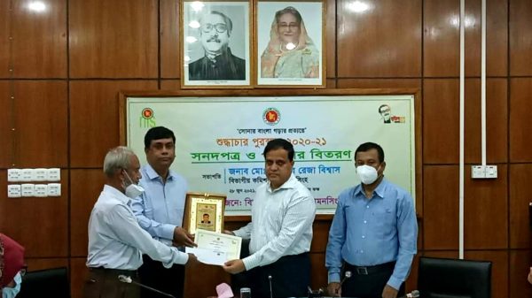 আনোয়ার সাদত জাহাঙ্গীর,ময়মনসিংহঃ আজ ২৮ জুন ২০২১ বিভাগীয় কমিশনারের কার্যালয়, ময়মনসিংহে স্বীয় কর্মক্ষেত্রে অসামান্য অর্জনের স্বীকৃতিস্বরুপ শুদ্ধাচার পুরষ্কার ২০২০-২১ প্রদান করা হয়। জনাব শফিকুর রেজা বিশ্বাস, বিভাগীয় কমিশনার, ময়মনসিংহ বিভাগ, আরো দেখুন