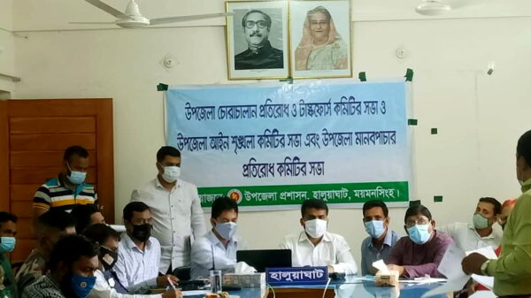 আনোয়ার সাদত জাহাঙ্গীর,ময়মনসিংহঃ ময়মনসিংহের হালুয়াঘাটে উপজেলা প্রশাসনের আয়োজনে চোরাচালান, মানব পাচার, নারী নির্যাতন প্রতিরোধ টাস্কফোর্স ও আইন-শৃঙ্খলা কমিটির সভা অনুষ্ঠিত হয়েছে।আজ (১৪ জুন) সোমবার সকালে উপজেলার নতুন সম্প্রসারিত ভবনের কনফারেন্স আরো দেখুন