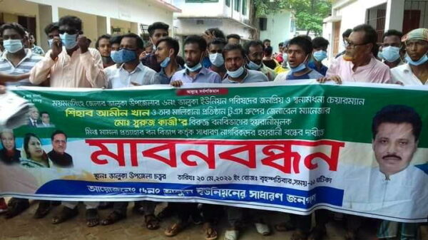আনোয়ার সাদত জাহাঙ্গীর,ময়মনসিংহ প্রতিনিধিঃ ময়মনসিংহের ভালুকায় বনবিভাগের কতিপয় অসাধু কর্মকর্তার ঘুষ বাণিজ্যের অভিযোগে এক ইউনিয়ন পরিষদের চেয়ারম্যান কে মিথ্যা মামলা দিয়ে হয়রানী করার প্রতিবাদে মানববন্ধন করেছে এলাকাবাসী।বৃহস্পতিবার (২০ মে) ভোক্তভোগী আরো দেখুন