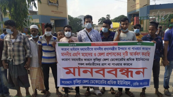 মোঃ সাইফ উদ্দিন রনী, কুমিল্লা ব্যুরো প্রধান: কুমিল্লা লকডাউনের কারনে কর্মহীন হয়ে পরা ডেকোরেটর শ্রমিক পরিবার ত্রান পাওয়ার দাবীতে মানববন্ধন করেছে।সোমবার দুপুরে কুমিল্লা টাউন হলের সামনে কুমিল্লা জেলা ডেকোরেটর শ্রমিক আরো দেখুন