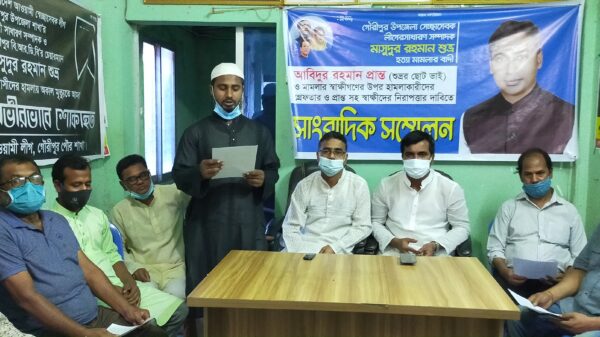 ওবায়দুর রহমান, উপজেলা প্রতিনিধি, গৌরীপুর, ময়মনসিংহ। ময়মনসিংহের গৌরীপুরে স্বেচ্ছাসেবকলীগ নেতা মাসুদুর রহমান শুভ্র হত্যা মামলার বাদী শুভ্র’র ছোট ভাই আবিদুর রহমান প্রান্ত জীবনের নিরাপত্তা চেয়ে সংবাদ সম্মেলন করেছেন। শনিবার (৮ আরো দেখুন