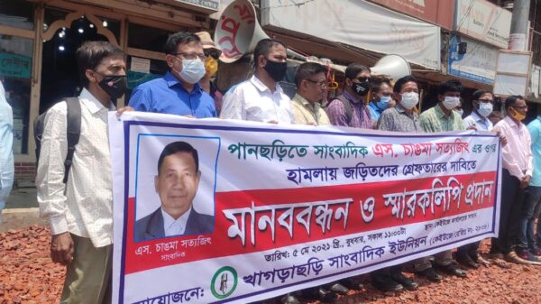 খাগড়াছড়ি প্রতিনিধি : খাগড়াছড়ির পানছড়িতে প্রবীন সাংবাদিক এস চাকমা সত্যজিতের উপর ইউপি চেয়ারম্যানের হামলার প্রতিবাদে মানববন্ধন ও স্মারকলিপি প্রদান করেছে সংবাদকর্মীরা।০৫ মে বুধবার সকালে খাগড়াছড়ি সাংবাদিক ইউনিয়নের সামনে জেলার ও আরো দেখুন