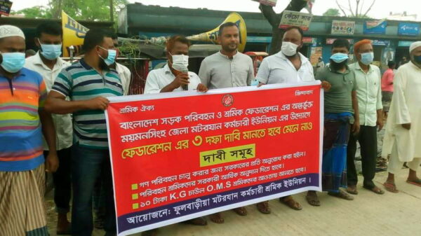 আনোয়ার সাদত জাহাঙ্গীরঃময়মনসিংহঃ ময়মনসিংহ জেলা মটরযান কর্মচারী ইউনিয়ন এর উদ্যোগে স্বাস্থ্য বিধি মেনে গণপরিবহন চালুর দাবীতে মানববন্ধন করেছে ফুলবাড়িয়া উপজেলা সড়ক পরিবহন ও শ্রমিক ফেডারেশন। শনিবার দুপুরে ফুলবাড়িয়া উপজেলা পরিষদের আরো দেখুন