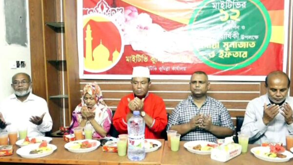 কুমিল্লা ব্যুরোঃ কুমিল্লায় জনপ্রিয় টিভি চ্যানেল মাইটিভির ১২ তম বর্ষে পদার্পন ও প্রতিষ্ঠা বার্ষিকী উপলক্ষে দোয়া মুনাজাত ও ইফতার অনুষ্ঠিত হয়েছে।বৃহস্পতিবার বিকেলে নগরীর নজরুল এভিনিউস্থ মাইটিভির কুমিল্লা কার্যালয়ে দোয়া মুনাজাত আরো দেখুন