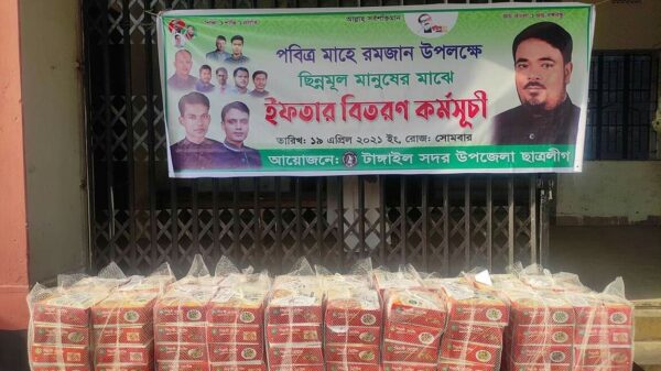 সাজ্জাদ হোসেন, টাঙ্গাইল প্রতিনিধিঃ পবিত্র মাহে রমজান উপলক্ষে ছিন্নমূল মানুষদের মাঝে টাঙ্গাইলের সদর উপজেলা ছাত্রলীগের ইফতার বিতারণ কর্মসূচী আয়োজন করা হয়েছে।আজ সোমবার [১৯ এপ্রিল] বিকাল ৫টার দিকে এই আয়োজন করে আরো দেখুন