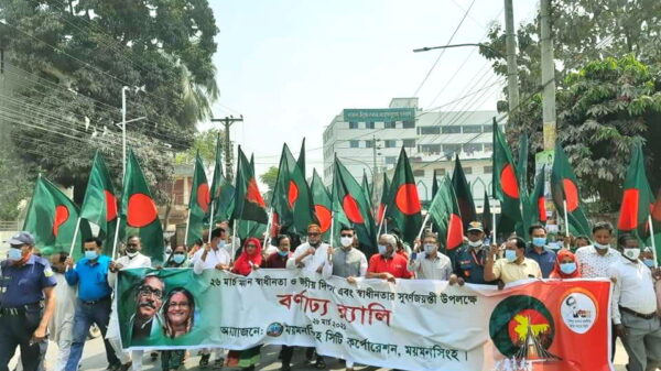 আনোয়ার সাদত জাহাঙ্গীরঃময়মনসিংহঃ আজ সকাল ১০ টায় মহান স্বাধীনতা ও জাতীয় দিবস উপলক্ষ্যে বাঙালি জাতির শ্রেষ্ঠ সন্তান বীর মুক্তিযোদ্ধাদের অংশগ্রহণে ৫০ টি লাল সবুজের পতাকায় বর্ণাঢ্য র্যালি এবং র্যালি পরবর্তী আরো দেখুন
