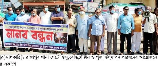 মোঃ নাঈম হাসান ঈমন রাজাপুর (ঝালকাঠি) প্রতিনিধিঃ ঝালকাঠির রাজাপুর থানা গেটের সামনে ২৫ মার্চ বৃহস্পতিবার সকালে থানার সামনে রাজাপুর হিন্দু,বৌদ্ধ,খ্রীষ্টান ও পূজা উদ্যাপন পরিষদের আয়োজনে সুণামগঞ্জের শাল্লা উপজেলাসহ সারাদেশে সংখ্যা আরো দেখুন