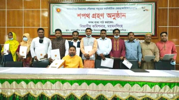 আনোয়ার সাদত জাহাঙ্গীরঃময়মনসিংহ প্রতিনিধিঃ আজ দুপুরে ময়মনসিংহের বিভাগীয় কমিশনারের কার্যালয়ে তৃতীয়বারের মতো নির্বাচিত মেয়র এবিএম আনিছুজ্জামান আনিসকে শপথ বাক্য পাঠ করান ময়মনসিংহ বিভাগীয় কমিশনার কামরুল হাসান এনডিসি। পরবর্তীতে সাধারণ ওয়ার্ডের আরো দেখুন