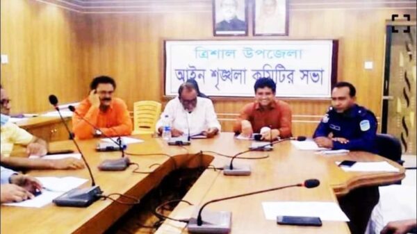 আনোয়ার সাদত জাহাঙ্গীরঃময়মনসিংহঃ ময়মনসিংহের ত্রিশালে মাসিক আইন-শৃঙ্খলা কমিটির সভা অনুষ্ঠিত হয়েছে।রোববার (২৮) ফেব্রুয়ারি সকালে ত্রিশাল উপজেলা পরিষদ হলরুমে এ সভা অনুষ্ঠিত হয়।উপজেলা নির্বাহী অফিসার মোস্তাফিজুর রহমানের সভপাতিত্বে সভায় প্রধান অতিথি আরো দেখুন