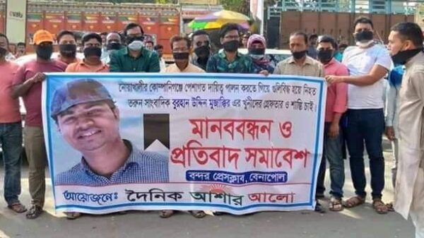 নয়ন সরদার,শার্শা নোয়াখালীর কোম্পানীগঞ্জে পেশাগত দায়িত্ব পালনকালে আওয়ামী লীগের দুপক্ষের সংঘর্ষে গুলিবিদ্ধ হয়ে জাতীয় পত্রিকা বাংলাদেশ সমাচার পত্রিকার কোম্পানীগঞ্জের প্রতিনিধি সাংবাদিক বুরহান উদ্দিন মুজাক্কির নিহতের ঘটনার প্রতিবাদে মানববন্ধন ও সমাবেশ আরো দেখুন