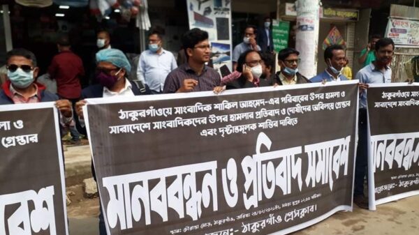 মোঃওয়াদুদ হোসেনঃঠাকুরগাঁও প্রতিনিধি : ঠাকুরগাঁওয়ে সাংবাদিক শাকিলের বাড়িতে ঢুকে তার বাবা-মা সহ চারজনকে কুপিয়ে জখম করা সহ সারাদেশে সাংবাদিকদের উপর নির্যাতনের প্রতিবাদে রাজপথে নেমেছেন ঠাকুরগাঁও জেলার গণমাধ্যম কর্মীরা। বৃহস্পতিবার(২৫ ফেব্রুয়ারি) আরো দেখুন