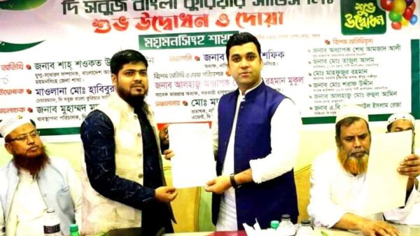 আনোয়ার সাদত জাহাঙ্গীরঃ ময়মনসিংহঃ ময়মনসিংহে “সবুজ বাংলা” কুরিয়ার সার্ভিসের নতুন শাখা উদ্বোধন করা হয়েছে। এ উপলক্ষে আলোচনা সভা ও দোয়া মাহফিলের আয়োজন করা হয়েছিল।আজ শুক্রবার বিকালে শহরের সারদা ঘোষ রোডের আরো দেখুন