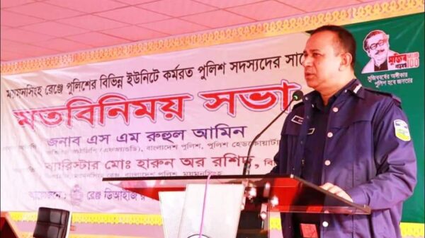 আনোয়ার সাদত জাহাঙ্গীর: মময়মনসিংহ : আজ ২৪ জানুয়ারি ময়মনসিংহ জেলা পুলিশ লাইন্সস্থ রেঞ্জ ডিআইজি’র কার্যালয়, ময়মনসিংহের আয়োজনে ময়মনসিংহ রেঞ্জ পুলিশের বিভিন্ন ইউনিটে কর্মরত সদস্যদের সঙ্গে মতবিনিময় সভা অনুষ্ঠিত হয়। মতবিনিময় আরো দেখুন