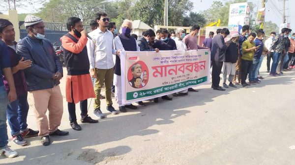 শরিফা বেগম শিউলীরংপুর প্রতিনিধিঃ রংপুর বেগম রোকেয়া বিশ্ববিদ্যালয়ের কতিপয় শিক্ষক কতৃক গত ১৬ ডিসেম্বর বাংলাদেশের জাতীয় পতাকা অবমাননা করা হয়, এরই প্রতিবাদে মানববন্ধন করেছে ২৮ নং ওয়ার্ড আওয়ামীলীগ। রবিবার (২০ আরো দেখুন