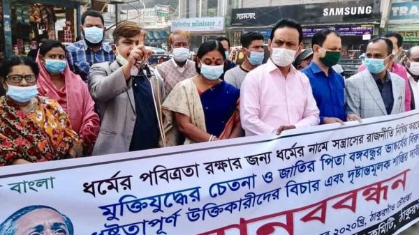 ঠাকুরগাঁওয়ে মুক্তিযুদ্ধের চেতনা এবং জাতির পিতা বঙ্গবন্ধুর ভাস্কর্যের বিরুদ্ধে ধৃষ্টতাপূর্ণ উক্তিকারীদের শাস্তির দাবিতে মানববন্ধন হয়েছে।শনিবার সকালে শহরের চৌড়াস্ত মোড়ে একাত্তরের ঘাতক দালাল নির্মূল কমিটি জেলা শাখার আয়োজনে এ মানববন্ধন হয়। আরো দেখুন