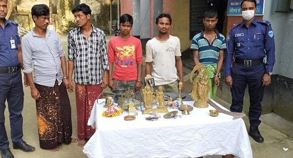 ব্রাহ্মণবাড়িয়ার নবীনগর পৌর এলাকার ভোলাচং গ্রামের ‘ঠাকুর বাড়ি’র প্রাচীন মন্দিরে থেকে বুধবার মধ্যরাতে গণেশ মূর্তিসহ ৮টি পিতলের মূতি চুরিযাওয়ার ২৪ ঘন্টার মধ্যেই মূর্তি গুলি উদ্ধার করেছে পুলিশ। এঘটনায় জড়িত ৫ আরো দেখুন