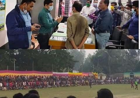 বগুড়ার শিবগঞ্জ উপজেলায় করোনা দ্বিতীয় ধাপ মোকামেলার নিমিত্তে পরিচালিত ভ্রাম্যমাণ আদালতের অভিযানে উপজেলার গাংনগর মাঠে সরকারী আদেশ অমান্য করে ফুটবল টুর্নামেন্ট আয়োজনের দায়ে( সংক্রামন রোগ,প্রতিরোধ,নিয়ন্ত্রন ও নির্মূল)আইন ২০১৮ লঙ্ঘনের দায়ে আরো দেখুন