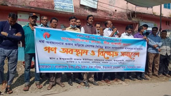 পিরোজপুরের ইন্দুরকানীতে ধর্ম অবমাননার গুজব ছড়িয়ে সারা দেশে সাম্প্রদায়িক হামলার প্রতিবাদে গন অবস্থান ও বিক্ষোভ সমাবেশ অনুষ্ঠিত হয়েছে। ৭ নভেম্বর শনিবার সকালে উপজেলার ইন্দুরকানী বাজারে উপজেলা হিন্দু বৌদ্ধ খ্রিষ্ঠান,ঐক্য পরিষদের আরো দেখুন