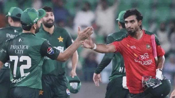 সাইম আইয়ুবের করা ইনিংসের ১৯তম ওভারের শেষ বলটি হাঁটু গেড়ে মারতে গিয়েছিলেন তানজিম হাসান সাকিব। কিন্তু ব্যাটে-বলে করতে পারেননি। উইকেটের পেছনে দাঁড়ানো মোহাম্মদ হারিসের তালুবন্দী হয়ে প্যাভিলিয়নের পথ ধরেন। তার আগে ৩১ বলে ৫ ছয় এবং এক ছয়ের সাহায্যে খেলেন ৫০ রানের ইনিংস। তানজিমের এই ইনিংস বাংলাদেশকে ১০০’র আগে অলআউট হওয়ার হাত থেকে বাঁচিয়েছে। সিরিজের দ্বিতীয় টি-টোয়েন্টিতে অতিথিদের লজ্জার হাত থেকে বাঁচানোর পথে বিশ্বরেকর্ড গড়েছেন তানজিম। যদিও দল হেরেছে ৫৭ রানে। তবে তানজিমের বিশ্বাস, শেষ টি-টোয়েন্টিতে ঘুরে দাঁড়াবে তাদের দল।