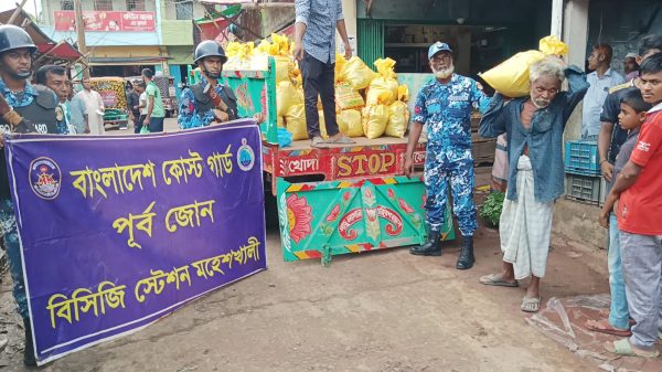 তিনি বলেন, প্রতিষ্ঠালগ্ন থেকেই বাংলাদেশ কোস্ট গার্ড উপকূল ও নদী তীরবর্তী অঞ্চলের দূর্যোগ মোকাবিলা এবং আর্থ-সামাজিক উন্নয়নে সুবিধাবঞ্চিত মানুষের বিভিন্ন প্রয়োজনে এগিয়ে এসেছে। পাশাপাশি সমুদ্র তীরবর্তী এলাকায় শান্তি-শৃঙ্খলা প্রতিষ্ঠা ও জননিরাপত্তা নিশ্চিতকল্পে অক্লান্ত পরিশ্রম করে যাচ্ছে। সাম্প্রতিক বঙ্গোপসাগরে গভীর নিম্নচাপের প্রভাবে সৃষ্ট জোয়ারের পানিতে কক্সবাজারের দ্বীপ উপজেলা মহেশখালীর নিম্নাঞ্চলগুলো প্লাবিত হয়ে স্থানীয় মানুষ পানি বন্দি হয়ে পড়ে। কোস্ট গার্ড পূর্ব জোন অধীনস্থ বিসিজি স্টেশন মহেশখালী কর্তৃক গত ৩১ মে ২০২৫ তারিখ শনিবার দুপুর ২ টা থেকে বিকাল ৫ টা পর্যন্ত মহেশখালী উপজেলার কুতুবজুম, মাতারবাড়ি ও সোনাদিয়ায় বন্যা কবলিত ১৩৫ টি গরীব ও অসহায় পরিবারের মাঝে ত্রাণ ও শুকনা খাবার বিতরণ করা হয়।